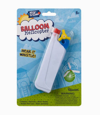 The Playground Classics Balloon Helicopter kit includes 2 latex balloons and 1 plastic propeller inside a peggable blister packet. The latex balloon attaches to the propeller and then deflates with a whistling sound, causing the helicopter to fly. A great introductory STEM toy for science teachers to use for learning about physics and motion, as well as developing kids’ interest in machines, flying, and engineering.