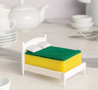 Once the dishes are clean and bright, lay your sponge in its bed and let it sleep tight! Clean Dreams, a dish sponge holder for kitchen sink - so cozy, your scrubber goes lucid! Who says your sponge can't have a nice, comfy bed after working all day? Sponge included - it's complete with two pillows for a snug tuck, which fits all standard sponge sizes. It's fun, it's functional, it's what dreams are made of! Holder measures 3.5" wide, 3" tall and 4.5" deep.