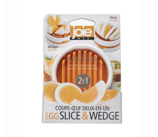 Joie's Egg Slicer and Wedger quickly cuts uniform wedges or slices of egg. Made with 18/8 stainless steel and BPA-free plastic; sturdy, durable, won't rust. At 3" in diameter, it's compact for storage. Use one side to cut egg slices or flip it over to cut wedges; no knife or cutting board necessary. Ideal for adding egg to sandwiches, Nicoise or chef salad, potato salad, or slicing bananas, strawberries, mushrooms, olives, pats of butter, and more!