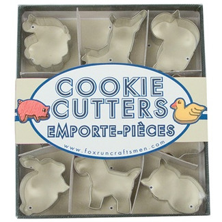 This cute mini set of 9 animal cookie cutters by Fox Run are made of tin-plated steel. Cut all kinds of mini animal shapes in your fruit, cheese platter and cookies. Each set includes a little pig, chick, reindeer, cat, Scottie dog, owl, rabbit, cow and turkey. Great for themed birthday parties, or just plain ole' making eating fun! The compact boxed set measures 5" wide x 4.5" deep, with each cookie cutter ranging from 1" wide to 2" wide. To best preserve, hand wash and dry immediately.