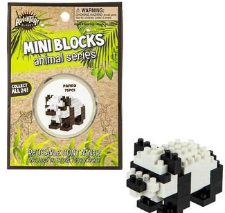 Adventure Planet Mini Blocks kits for on-the--go fun! Approximately 75 small colored blocks (very similar to Legos, but tinier) fit together to create a 3D, stand-up Panda Bear. Features a 2.5" diameter plastic container to store the pieces in. Conveniently portable for kids and packaged on an attractive card for easy gift giving!