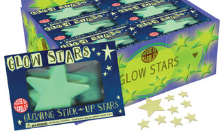 Cover any ceiling or wall with these glowing stick-on stars. Perfect for stargazers and children who struggle with the dark. Just expose the stars to daylight and watch them glow during the night! You can stick your glow stars anywhere but we would suggest sticking them to the ceiling above your bed so you can explore the galaxy or simply contemplate the cosmos before slipping off to sleep! Perfect for party favors, especially with space or astronaut themes! The small box is 3.5"wide by 2.25" tall and box contains approx. 8 assorted sized stick-on stars.