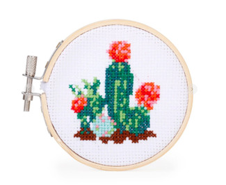 Relax at home working on a mini embroidery! This mini cactus kit is great for beginners and makes a great gift for just about anyone who loves to craft. This 4" square box contains a 3" bamboo hoop frame, a 4.3" square canvas to stich on, color threads, and 1 needle. Plus one cat pattern guide and helpful tips on getting started. Happy stitching! Assembled product is approx. 3.25" in diameter.