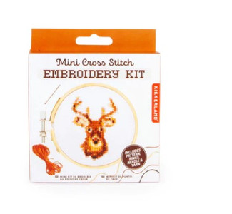 Relax at home working on a mini embroidery! This mini kit is great for beginners and makes a great gift for just about anyone who loves to craft. This 4" square box contains a 3" bamboo hoop frame, a 4.3" square canvas to stich on, color threads, and 1 needle. Plus one deer pattern guide and helpful tips on getting started. Happy stitching! Assembled product is approx. 3.25" in diameter
