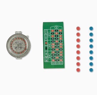 Spin small, dream big! Place your bets and start spinning! If the ball lands in your favor, you win! Use the included tokens to increase or decrease your wager. The mini set includes one roulette wheel (2.25" diameter x 1.25" tall), one casino layout mat, 1 ball, and 16 tokens (8 blue and 8 red). Tokens are stored inside wheel. Place your bets and start spinning!