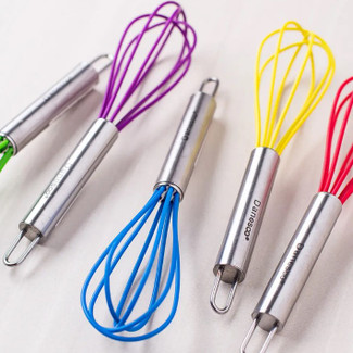 Another fun attribute to these mini silicone whisks is that they have the ability to make your kitchen pop. Having a fun color introduced to your palette will bring with it an enjoyable atmosphere. Remember, cooking is supposed to be fun! Our mini silicone whisk has new colors! They are: