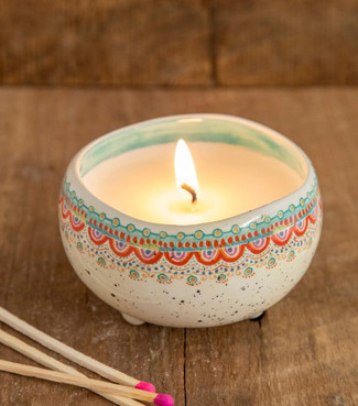 This Artisan Secret Message Candle by Natural Life is much more than just a candle. It brings double the enjoyment! You’ll love how the soy wax candle is scented with uplifting essential oils and burn evenly. The sweet Jasmine & Honey scent, has hints of honey combined with fresh floral blossoms for a soft warm scent. Once the wax burns away, a sweet secret message appears - "You are so loved" ! Wipe the wax clean and now you have a trinket bowl that can be used for virtually anything. It’s just the right size at 3.75" in diameter and 2.5" tall for jewelry or any small item on your desk to help keep you organized. To be sure your secret message remains a secret, remove the special tab on the outside of the packaging before gifting. Candle burns for 20 hours, and has a single lead free natural fiber wick.