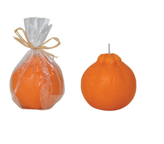 This bright orange candle looks good enough to eat (but don't). Perfect for that fruit display, or just to burn - this unscented fruit candle is 3" in diameter and 3" tall. It has an estimated burn time of 20 hours and it's made of paraffin wax.