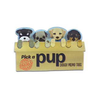 Our Pick a Pup Memo tabs will brighten up all your paperwork and reminders! There are 100 assorted sticky tabs, 25 sheet of 4 different designs. Simple peel off and stick and they will guard your notes. Great little bookmarks for marking homework, magazines or books. They are also a fun reminder for lunch boxes and more! The memo book is 4.5" wide x 2.75" tall and each tab is about 1" wide. Great gift for your vet!