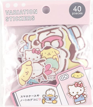Add a touch of cuteness to your backpack, notebook, doodle pad or sticker collection with this adorable Sanrio character sticker pack. Featuring all your favorite Sanrio characters, the pack includes 40 stickers in all: 4 pcs each of 5 small designs; 3 pcs each of 4 med designs and 2 pcs each of 4 large designs. Officially licensed by Sanrio Japan.