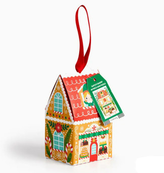 The Santa's Bakery 48 Piece Puzzle Ornament from Mudpuppy features a colorful illustration of a festive bakery complete with busy elves and Christmas treats! The box includes a tag with the full puzzle image for reference. The puzzle pieces are boxed in a charming tree-shaped ornament with attached red ribbon for easy hanging and an insert inside featuring the full puzzle image. It makes a perfect holiday gift! Puzzle ornament measures 3" wide, 5" tall and 2.5" deep.