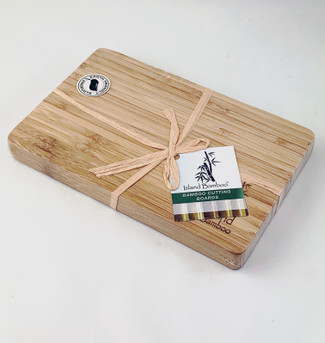 This perfectly petite bamboo cutting board is THE perfect everyday board. The board is 8"long, 5" wide and .75" thick. Because bamboo is resistant to water and does not warp or crack as easily as wood does. Bamboo is also sustainable material. It is a renewable resource that is 16% harder than traditional cutting boards. Fantastic for small spaces, this board is conveniently compact and easy to store and clean. This eco friendly board is made of extremely durable bamboo that won't dull knives, won't groove with the sharpest knife, and won't shed or splinter. It doesn't stain (even with beets) and bamboo is naturally antibacterial and food safe. Works great as a bar board as well, slicing fruits or garnishes. Hand wash only and oil regularly and this baby will last forever.