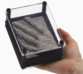 Kids will stimulate their imaginations and senses with 3-dimensional works of art using the this Classic Pin Art desktop frame from Toysmith. A black 3.75" x 5" plastic frame holds hundreds of tiny blunt moveable metal pins that easily shift forward to match the applied shape’s form. Perfect for a bookshelf or tabletop, these are great conversation starters, and are suitable for home or office use. Kids will love how different hand shapes and amounts of pressure change the frame’s 3D form and how it feels on their skin. Evoke a sense of focus, calm and relaxation as kids create shapes with their palms and fingers.
