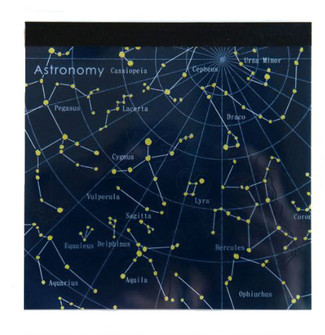 For the budding astronomer in the family - or one that simply loves the stars, this cute 4" square working notepad is a must-have! Perfect size for doodling, writing TODO notes or keeping it professional at work. The plastic overlay cover depicts a variety of night sky constellations and the pad contains 4 patterns of illustrations on the 100 sheets of paper provided.