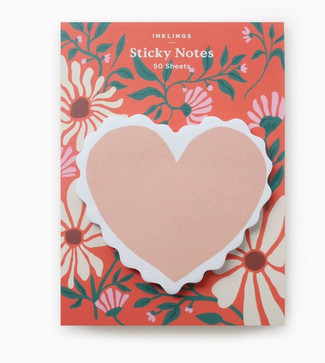 Sticky notes just got a whole lot cuter! Use these scallop heart-shaped notes for little grocery lists, reminders, lunchbox love and so much more. Packaged on an illustrated, ultra-thick backer board, they're adorably giftable... if you can bear to part with them! Peek behind the stack of notes for a surprise. There are 50 adhesive sheets on a chunky pad; die-cut shape; uncoated paper and a coordinating illustrated backer board.