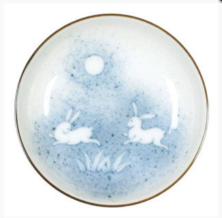 This pretty little sauce plate is beautifully illustrated with rabbits running under a full moon. At 3.75" diameter, this plate can be used for whatever strikes your fancy. The perfect sauce, condiment, appetizer, spice or soy sauce dish; or for classic sushi or sashimi. A great plate for display at your spring table! Microwave & Dishwasher safe!