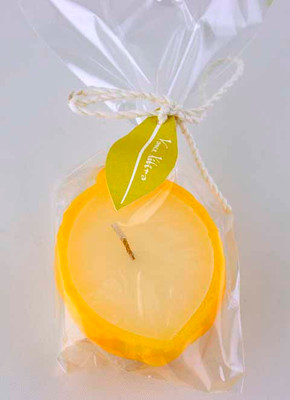 The clean, fresh scent of lemon is not only pleasing, but encourages relaxation! This summer citrus votive from Vance Kitira is creatively made to resemble the real fruit and has a crisp, refreshing lemon fragrance. The votive is 2" wide by 1" tall by 3" long and comes wrapped (and sold) individually. Ideal to burn in your powder room, kitchen or backyard bistro and burns for 6 hours.
